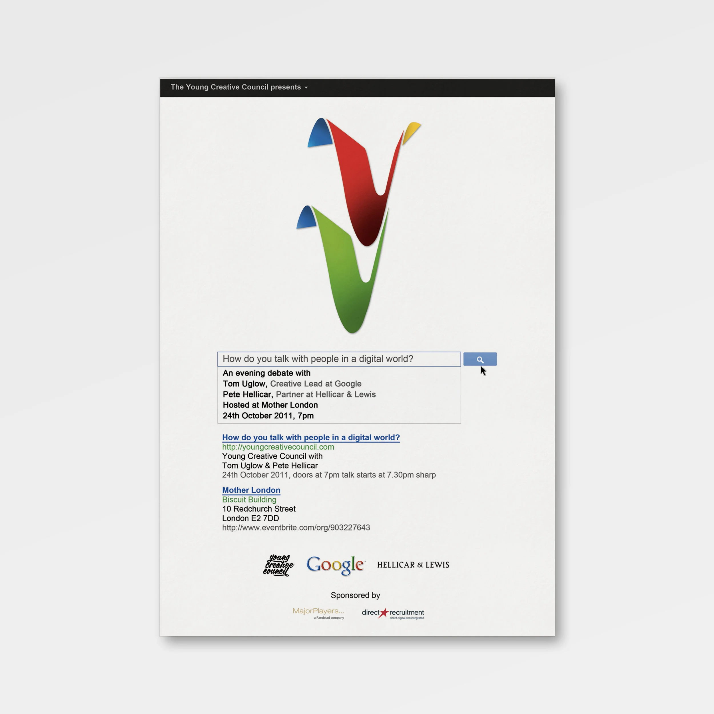 I've been a director of the Young Creative Council since 2007. Driven by the mantra that 'People who do, change the world. Everyone else is just living here' we're geared towards making the transition from education to industry as enjoyable as possible for graduates.